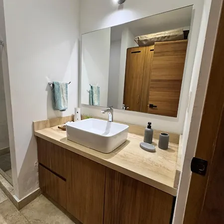 Gasten van het appartement hebben toegang tot een ingerichte keuken. To Puerto Morelos bushalte is binnen 10 minuten wandelen het gebouw.